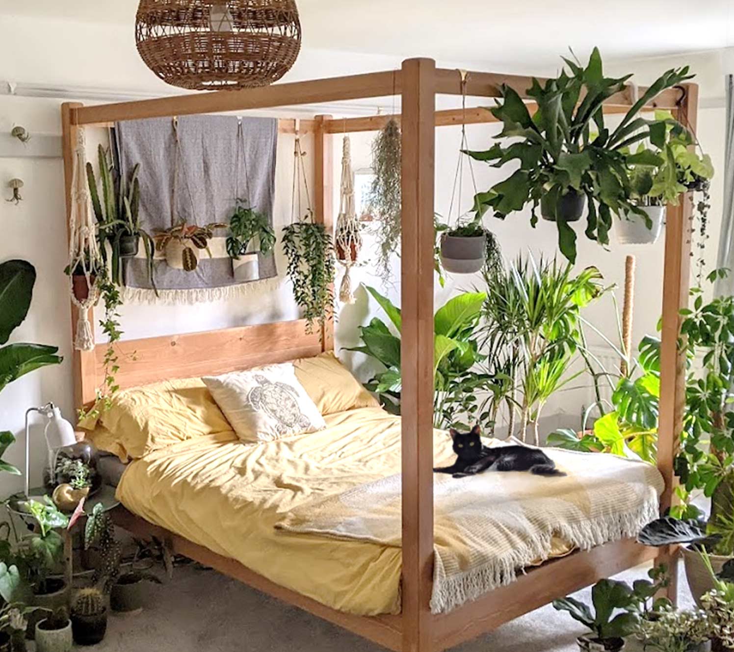 To make a room feel like a rainforest, focus on deep greens, layered foliage and tactile surfaces. In nature bedroom ideas, this creates warmth rather than